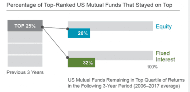 Some investors select mutual funds based on their past returns. Yet, past performance offers little insight into a fund’s future returns. For example, most US mutual funds in the top quartile (25%) of previous three-year returns did not maintain a top-quartile ranking in the following three years.