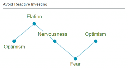 Many people struggle to separate their emotions from investing. Markets go up and down. Reacting to current market conditions may lead to making poor investment decisions.